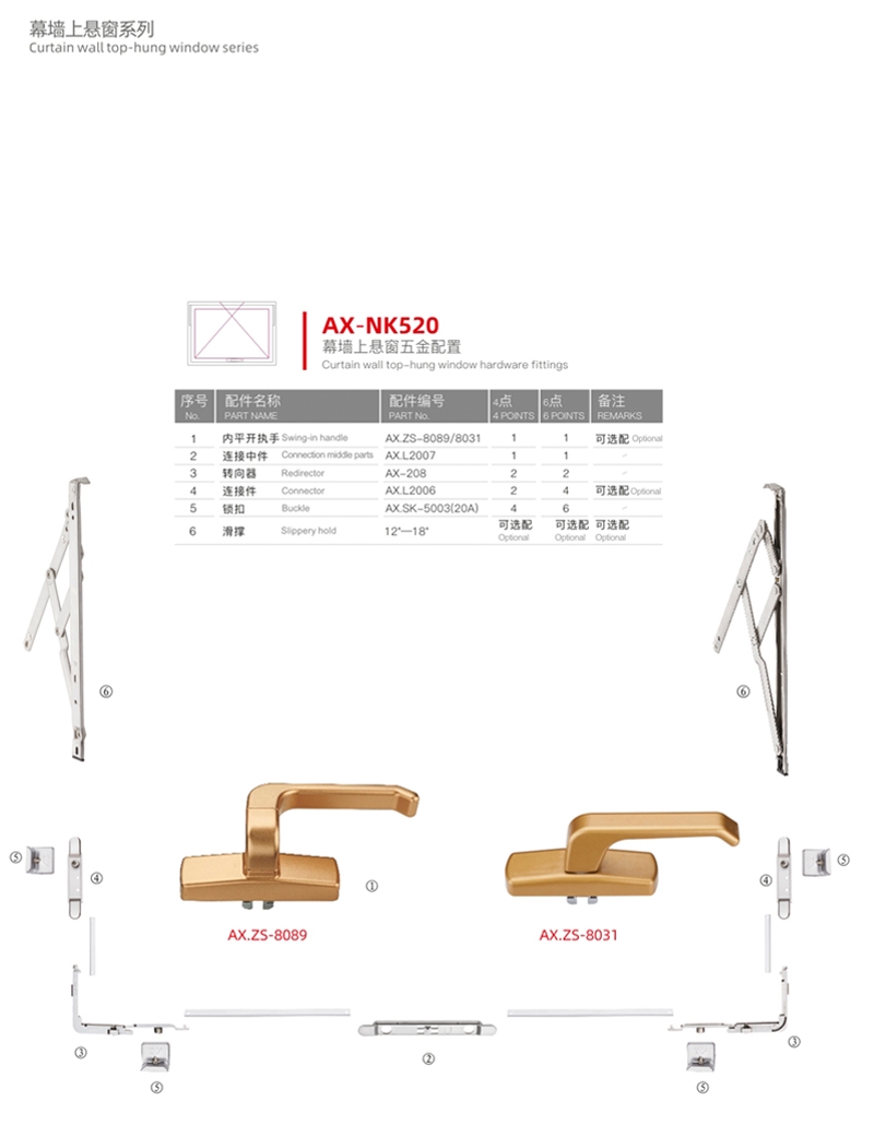 European inner casement window suspending(internal groove swing-in) --- AX-NK520