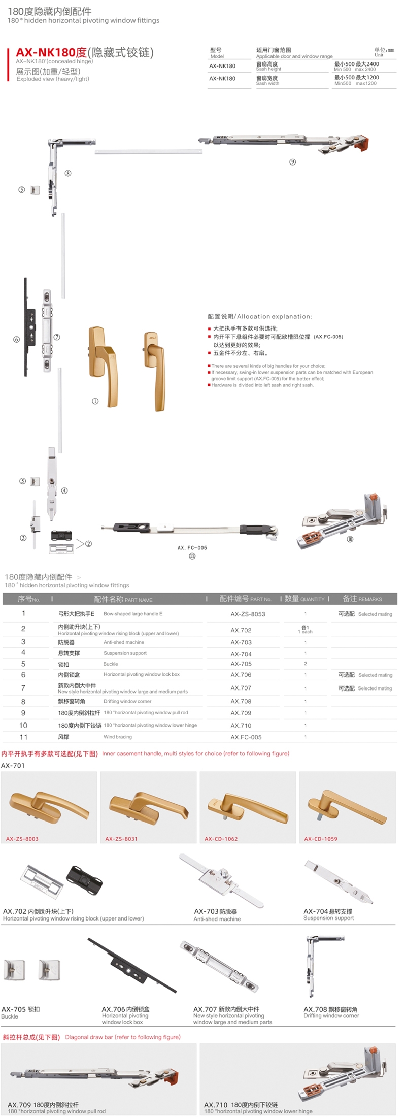 European inner casement window suspending(internal groove swing-in) --- AX-NK180