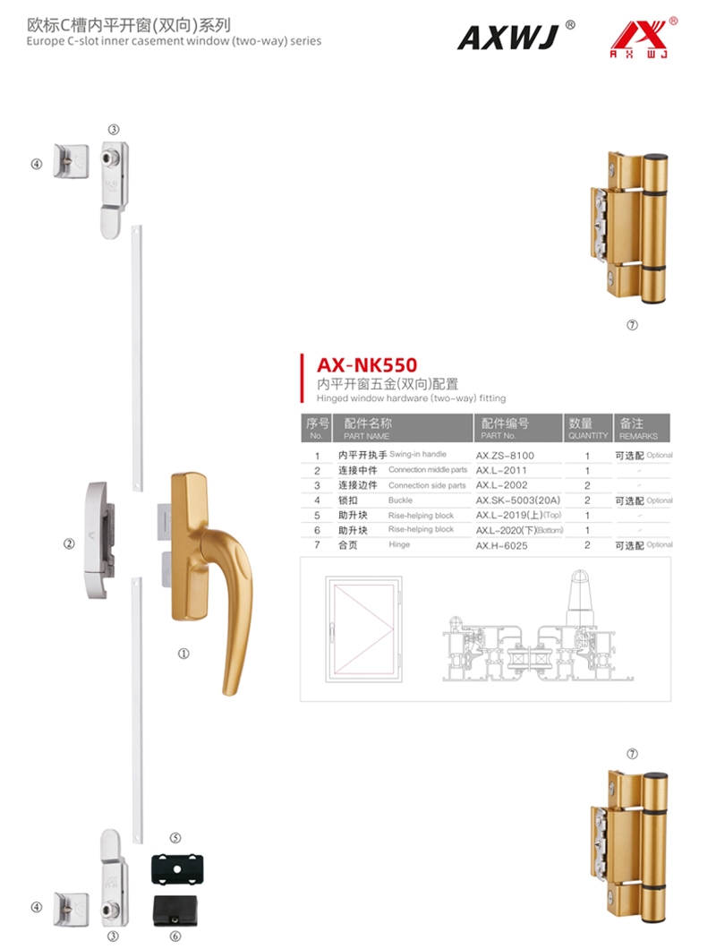 欧标槽内平开窗(内开内倒) --- AX-NK550