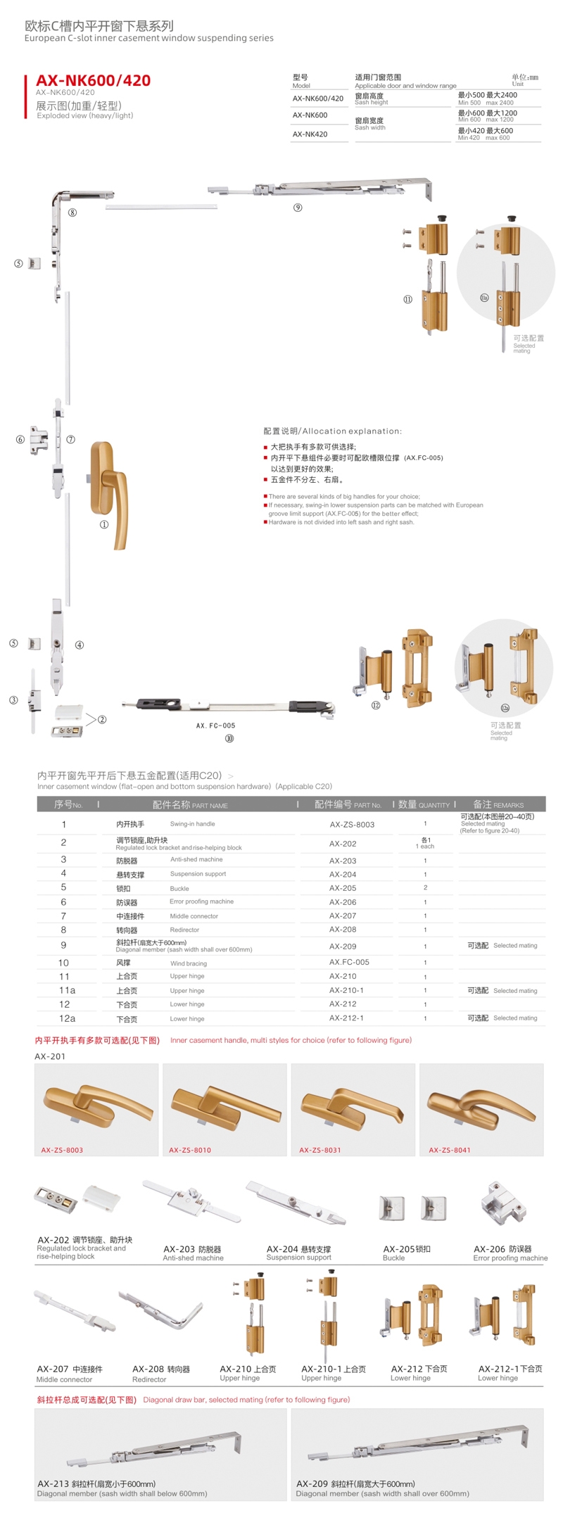 欧标槽内平开窗(内开内倒) --- AX-NK600/420